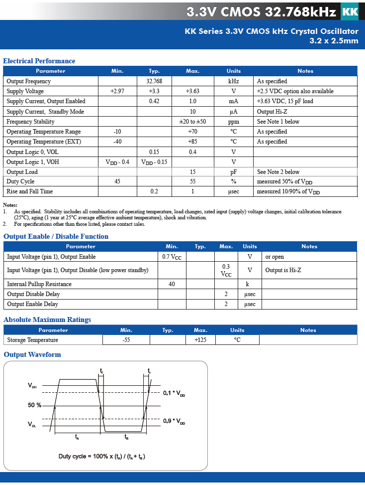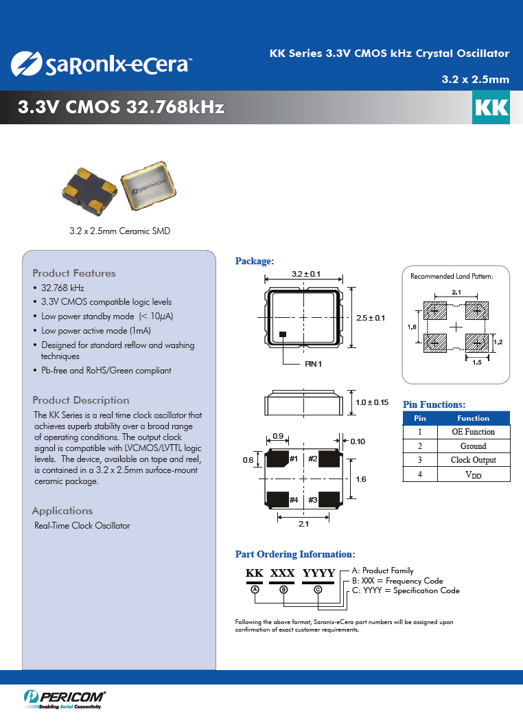 OSC 32.768KHZ 3.3V±20ppm 15pF 3.2*2.5mm