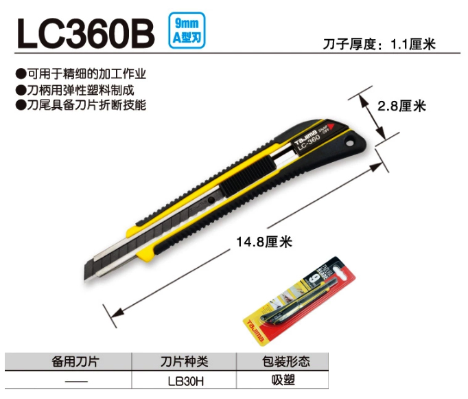 1 獨特的刀片設計避免刀片刃口與刀鞘的摩擦,保證刀片的鋒利度,減少刀片晃動切割更加精確