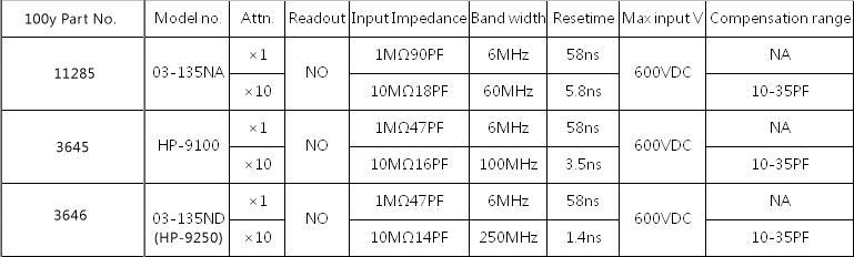 A very high quality probe suitable for use with almost any oscilloscope. Probe has a side switch on body for immediate selection of either times 10 or times 1.