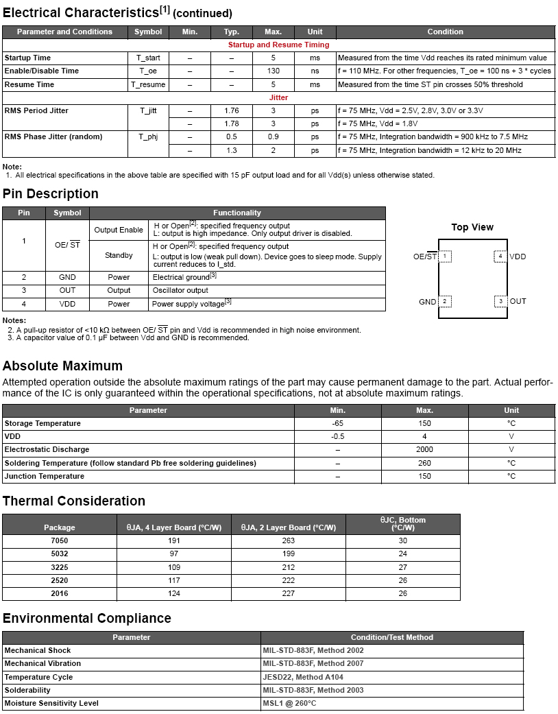 #113015 SIT8008AI-82-33E-16.384000Y OSC 16.384MHz 3.3V ±25ppm 7*5*0.9mm