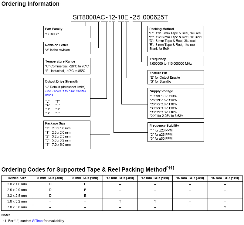 #113018 SIT8008AI-82-33E-11.059200Y OSC 11.0592MHz 3.3V ±25ppm 7*5*0.9mm