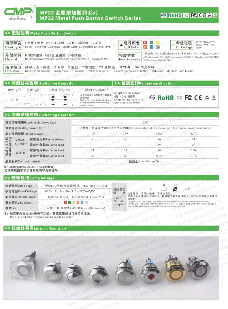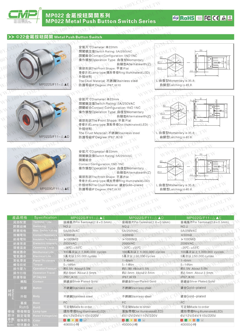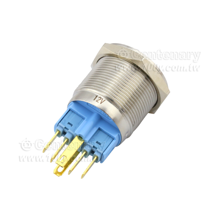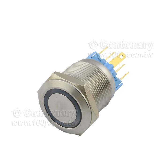 22mm不銹鋼環形自鎖帶燈按鈕 LED24V 藍色