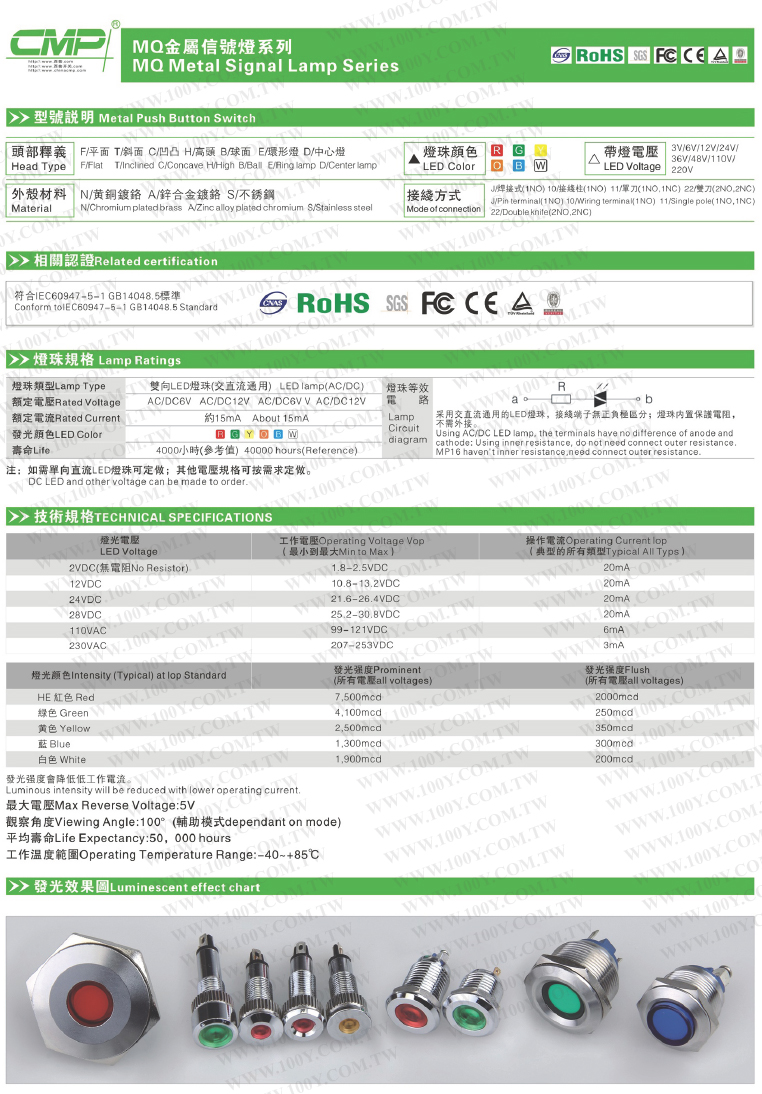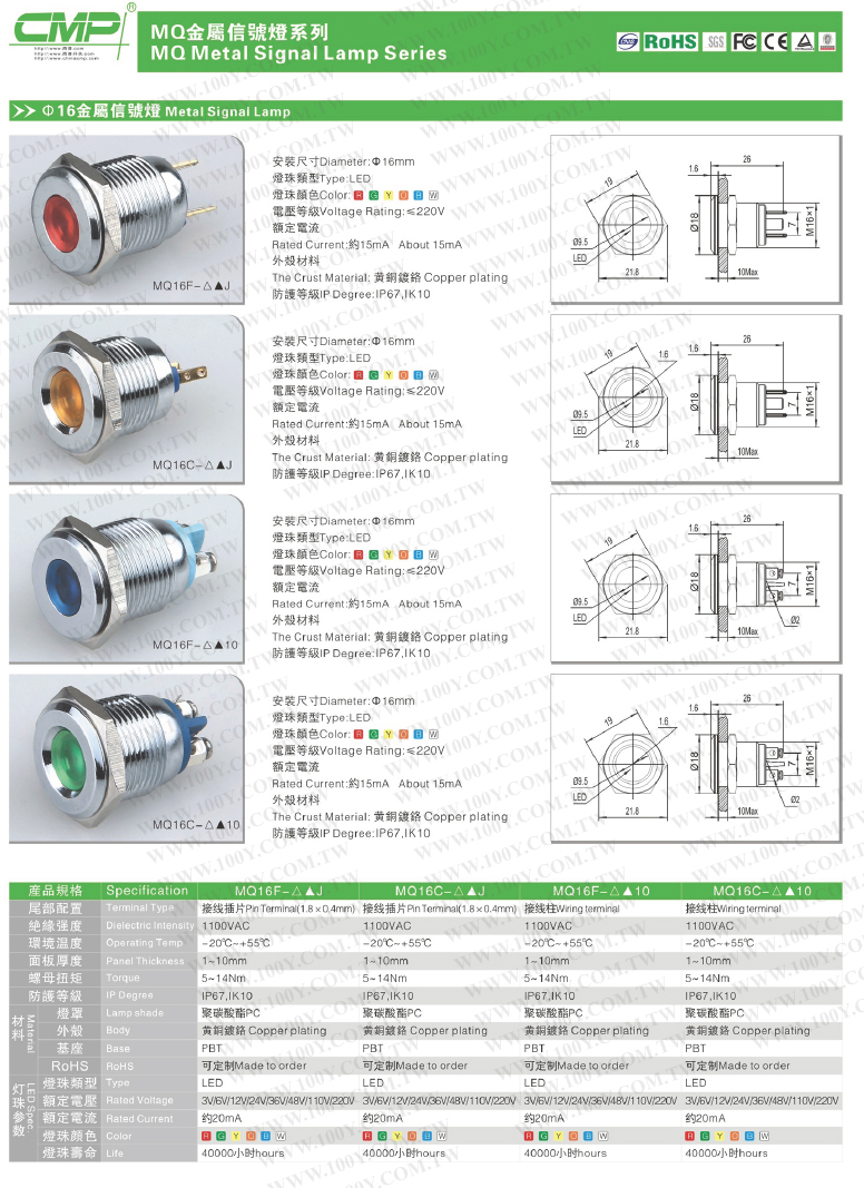 Φ16mm 金屬信號燈 焊接式 LED12V 紅色