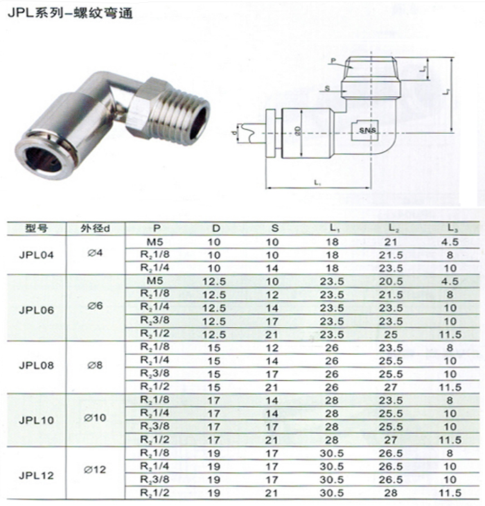 #114589 JPL6-01 金屬快速接頭 外徑:6mm 1/8