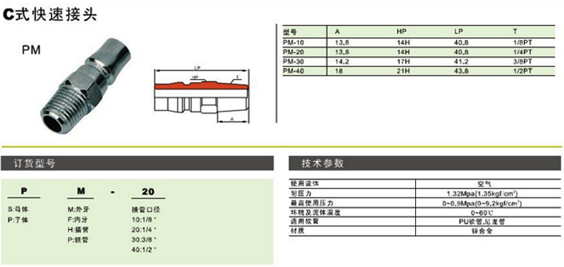 #115794 PM-20 C式快速接頭 子體/外牙 1/4"