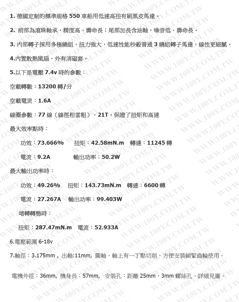 高速大扭矩滾珠軸承550電机 尺寸:36*57mm 軸長:11mm