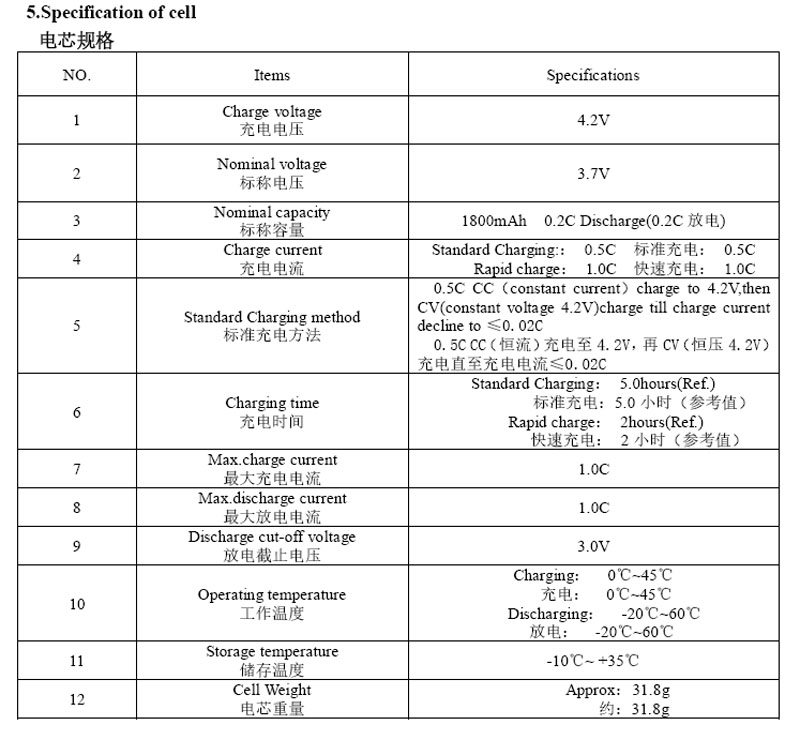 聚合物鋰充電電池(帶保護板) 1800mAh/3.7V
