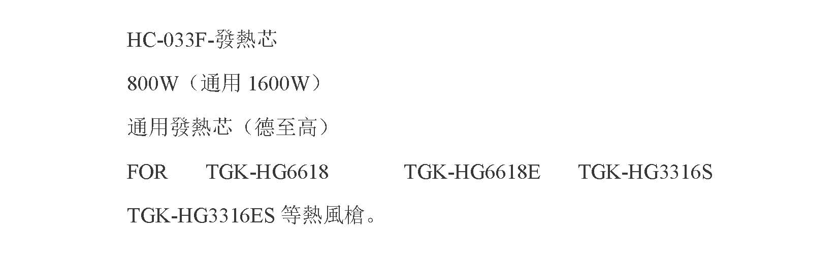 發熱芯 通用1600W 1800W 可配 #123946/#123950 #123952