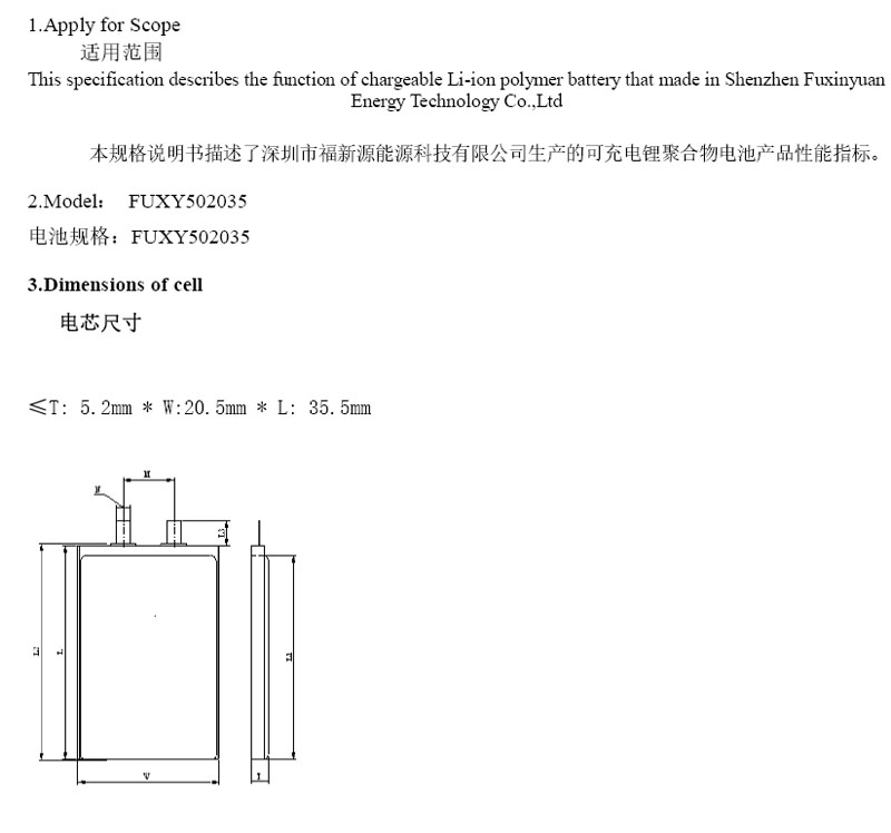 聚合物鋰充電電池300mAh/3.7V 20*35mm