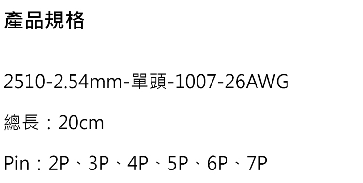 2510-2.54mm-7P-單頭-1007-26-20CM
