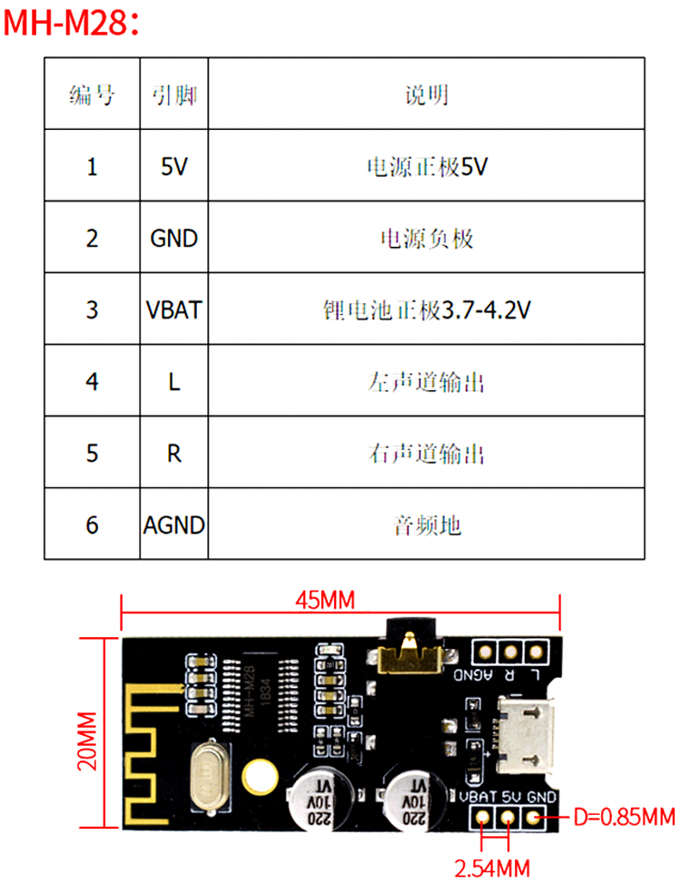 M28-5.0藍牙音頻接收器模塊