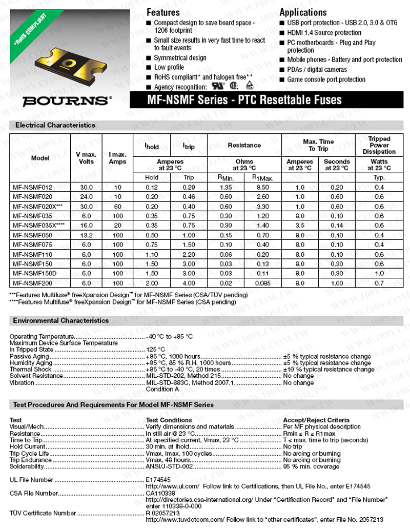 1206 SMD自復式保險絲 30V/0.12A (3K/R)