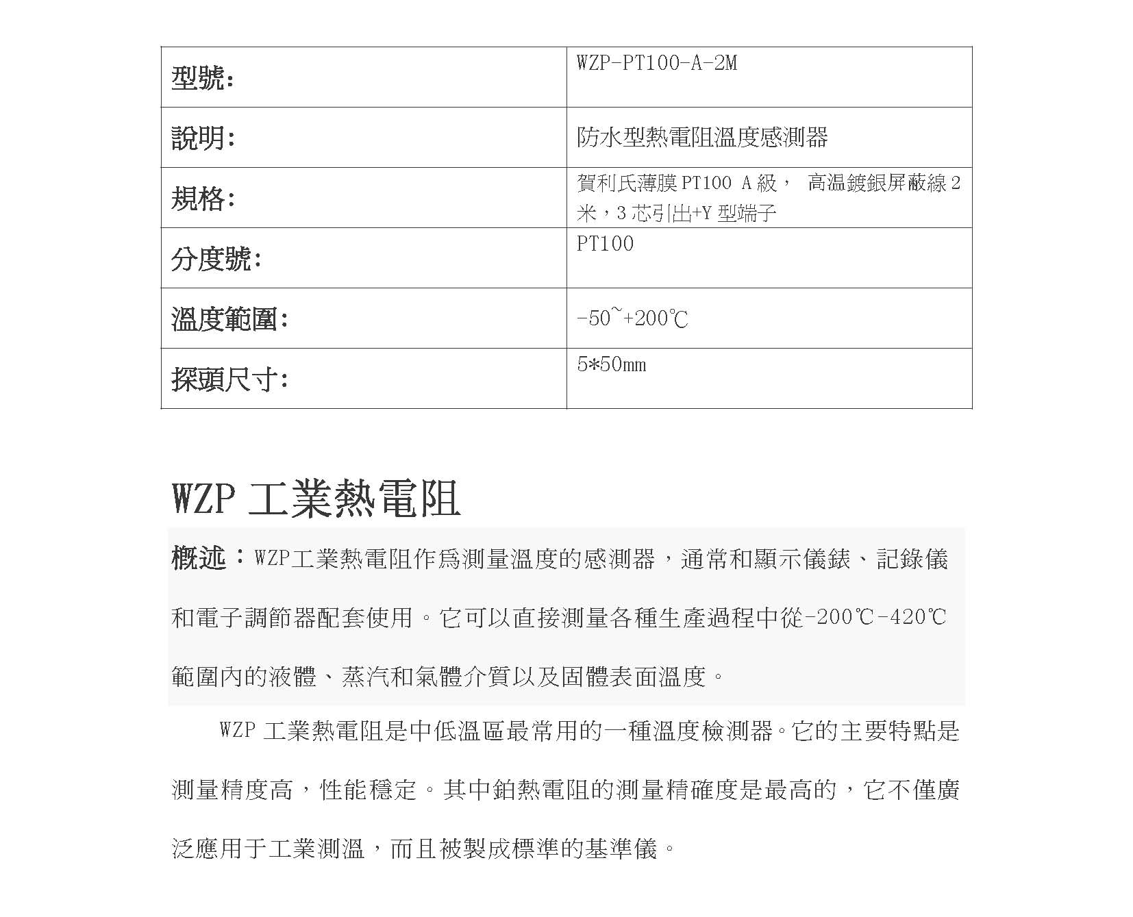 防水型熱電阻溫度感測器 A級 精度:0.1 -50~+450℃-5M