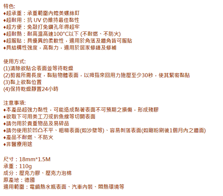 超強力雙面膠帶 18mm*1.5M