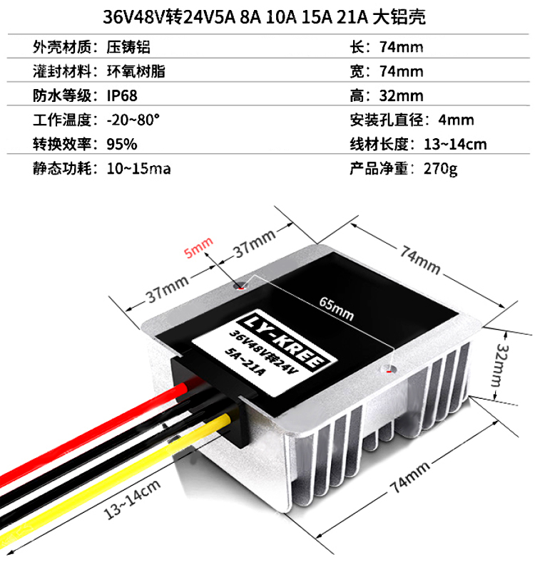 LY-KREE_DC-DC降壓模塊 36V/48V轉24V/10A