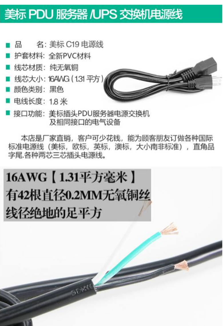 美規電源線+C19-2平方-1.8M