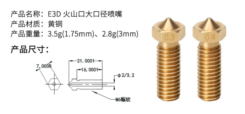 E3D-V6大口徑加長噴嘴-1.75/1.0