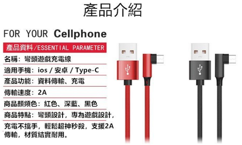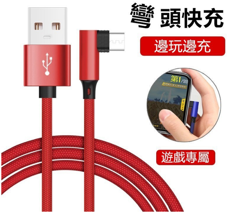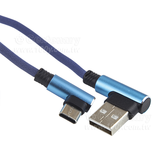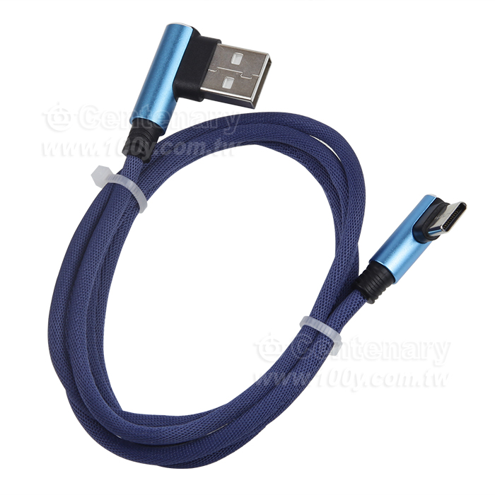 彎頭數據線Type-c尼龍編制遊戲機充電 藍色-袋裝