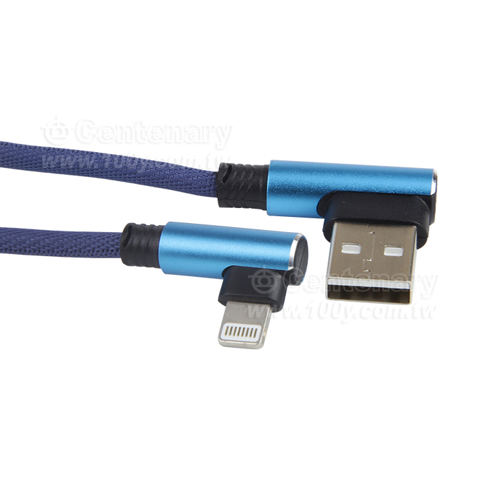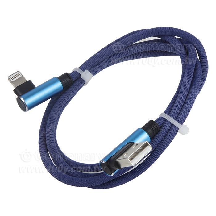 彎頭數據線 IPHONE尼龍編制遊戲機充電 藍色-袋裝