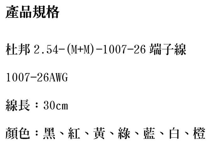 杜邦2.54-1P(M+M)-1007-26-30CM-黑