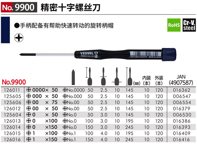 日本進口Vessel_"十"精密起子 9900# PH000*50