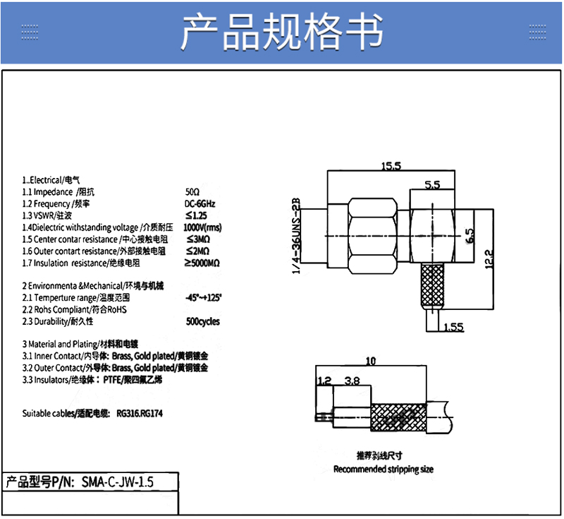 射频连接器 SMA弯公头