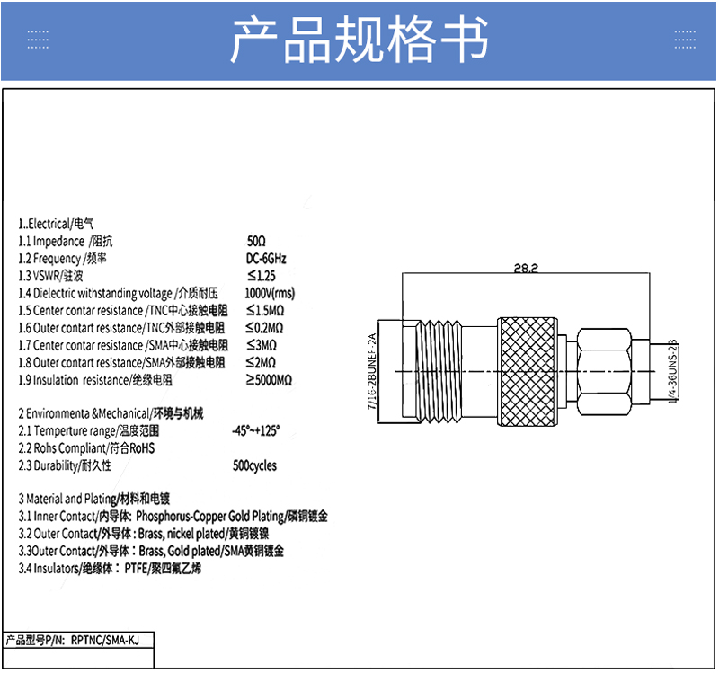 射頻轉接器 RPTNC/SMA-KJ