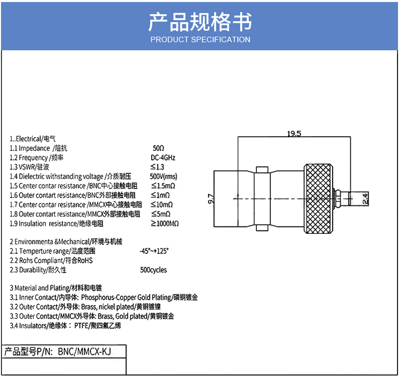 射頻連接器 BNC/MMCX-KJ BNC母轉MMCX公