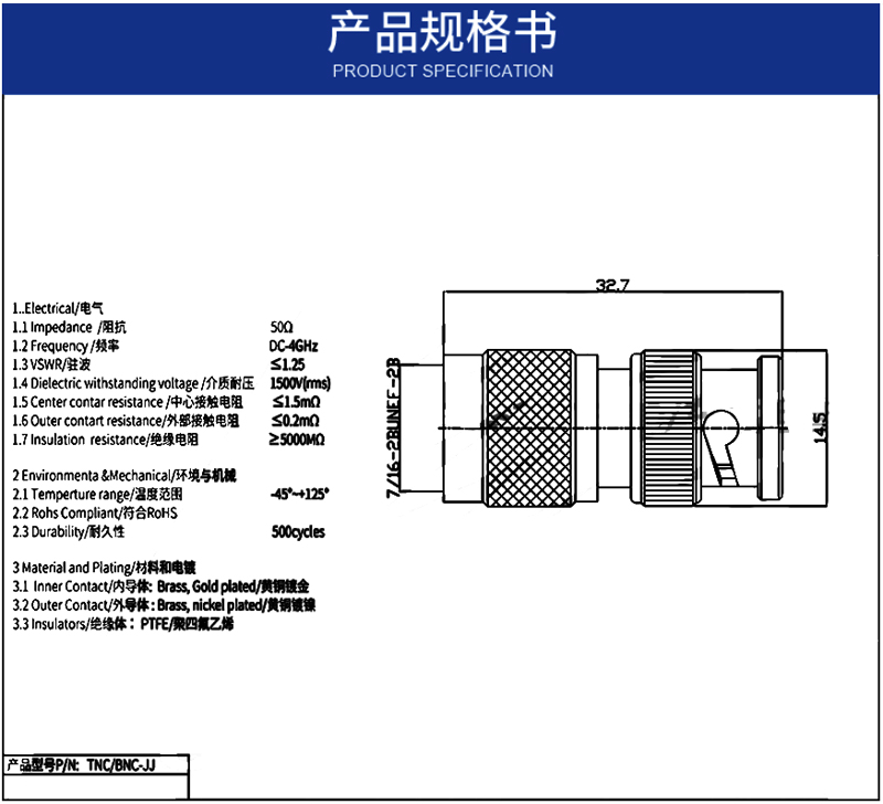 射頻轉接器 BNC/TNC-JJ TNC公轉BNC公