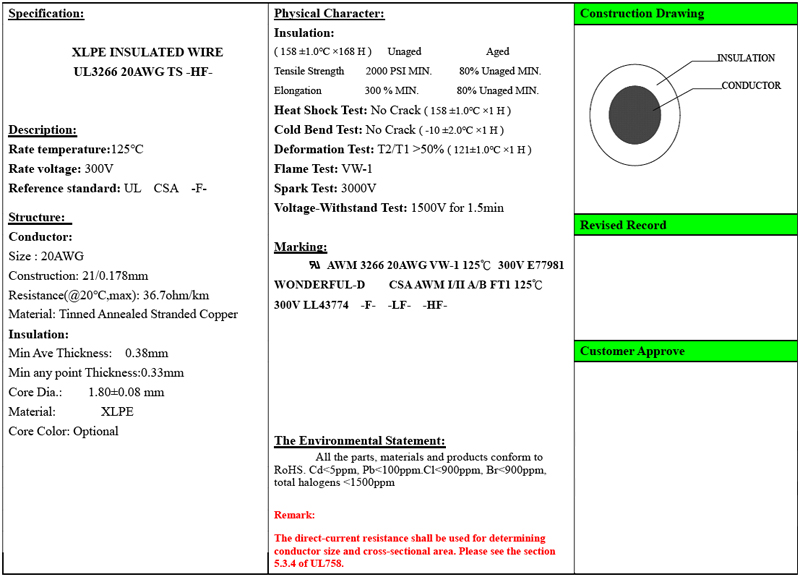UL3266-20AWG-21/0.178-綠-30.5M/R