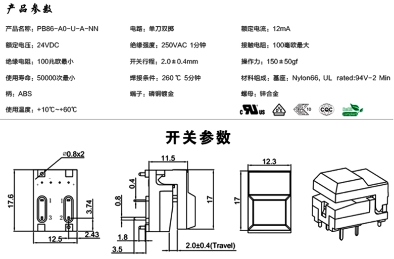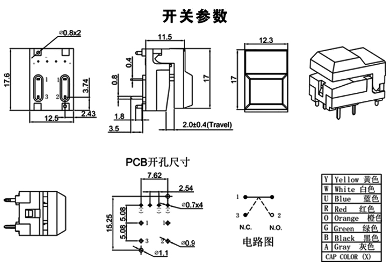 DIP 按鍵開關 小蓋帶單LED,黃蓋,紅LED