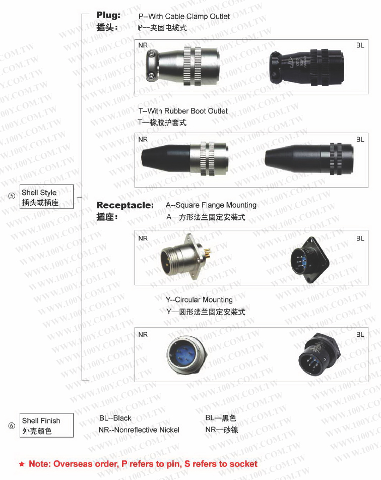 7P (母插頭孔+圓形公插座針) 5A/125V