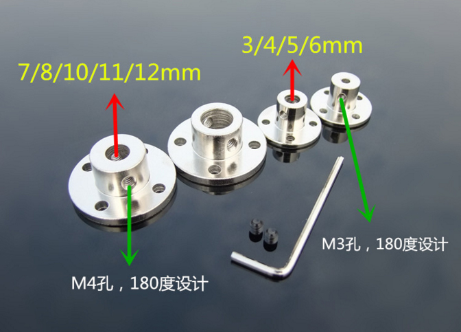 內徑3mm、3.17mm、4mm、5mm、6mm、6.35mm的尺寸是:圓柱外徑10mm,圓柱高度10mm,整體高度12mm,固定孔螺絲是M3。(孔距16mm)