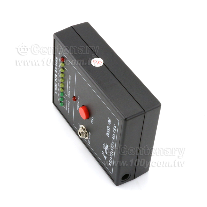 - 功能:本測試儀是提供量測表面電阻系數及接地電氣聯結之測量值. 測試範圍從10e3~10e12 Ω/square, 正確性為 ±10%