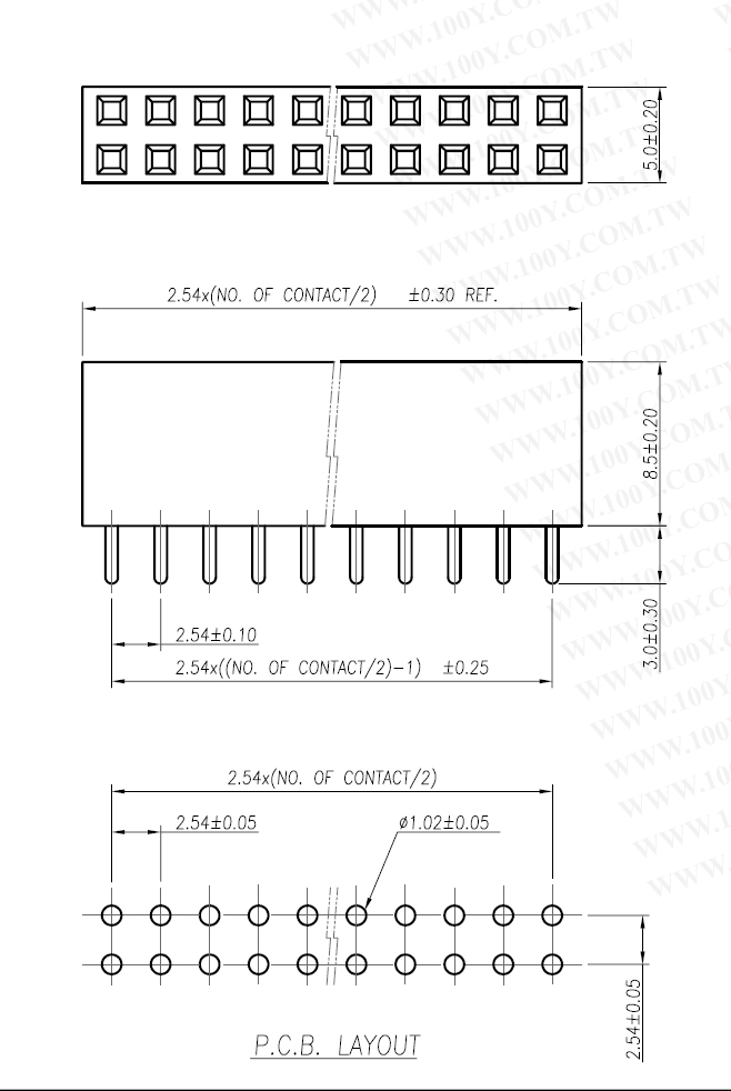 32P雙排針母座 180° P:2.54mm【ROHS】