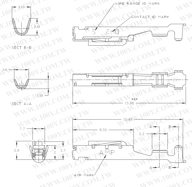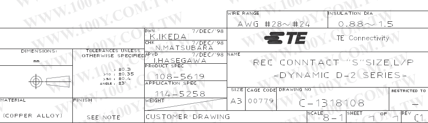 For TE Dynamic D-2100系列 2.5mm 母針鍍金