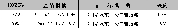 • 介面:一頭是3.5mm電腦介面,另一頭是蓮花 (梅花) 音頻介面