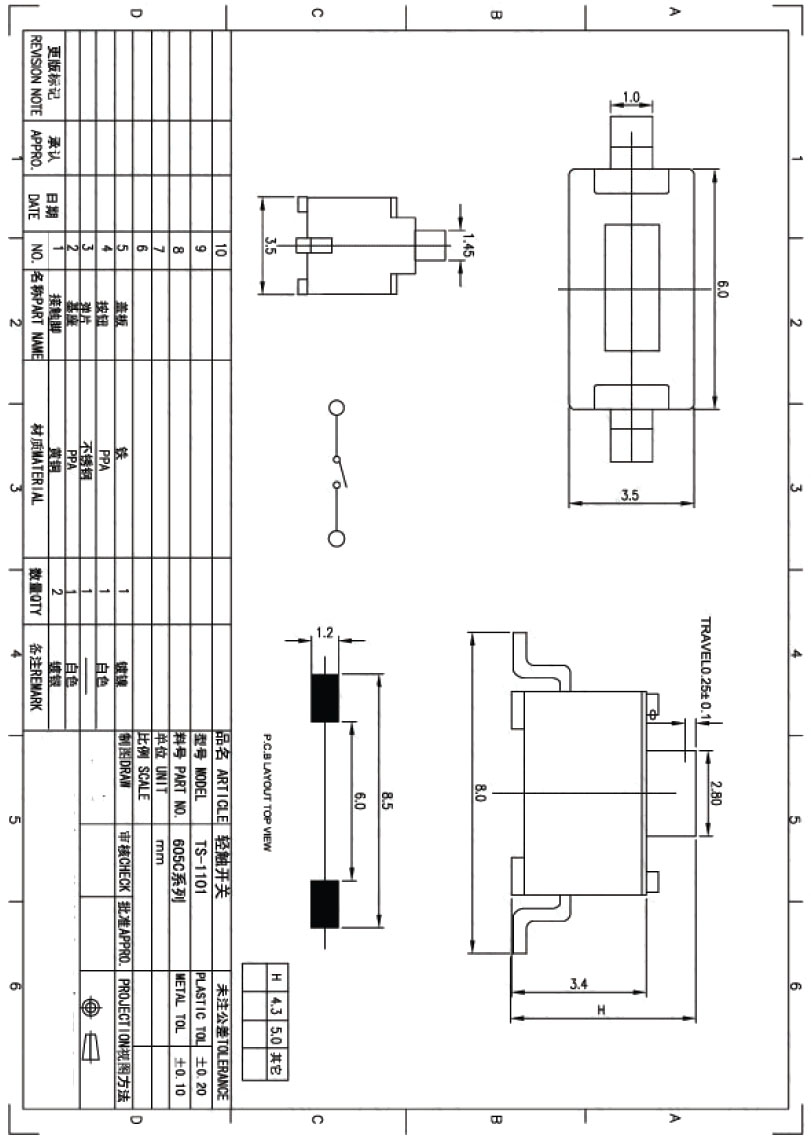 SMD微小型按鍵6*3.5*4.3【ROHS】