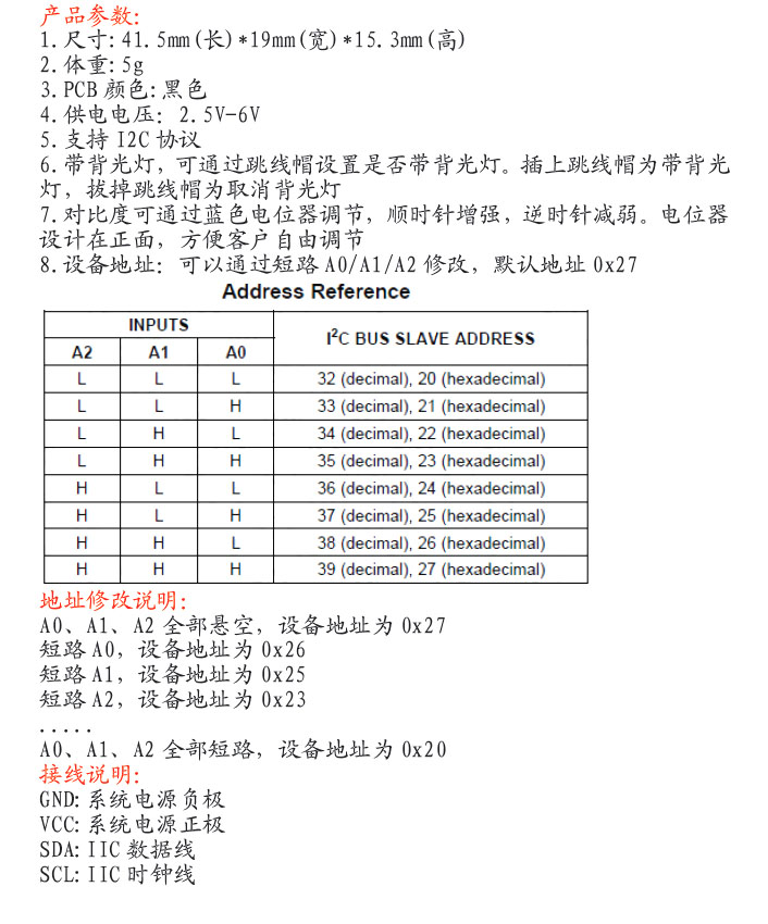 IIC 接口 LCD1602轉接板 (IC:PCF8574T模塊 NXP)