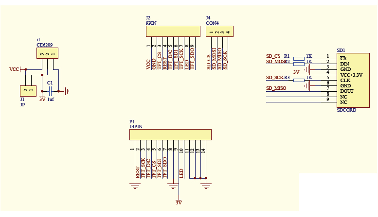 • TFT電源:屏幕電源為2.8-3.3V;切記不能用5V (帶PCB的模塊已經繼承3V穩壓IC,可以輸入5V)
