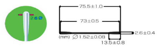 長度:73±0.5mm 直徑: 1.52±0.08mm