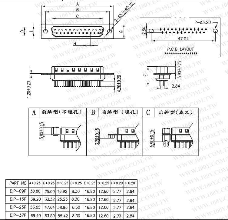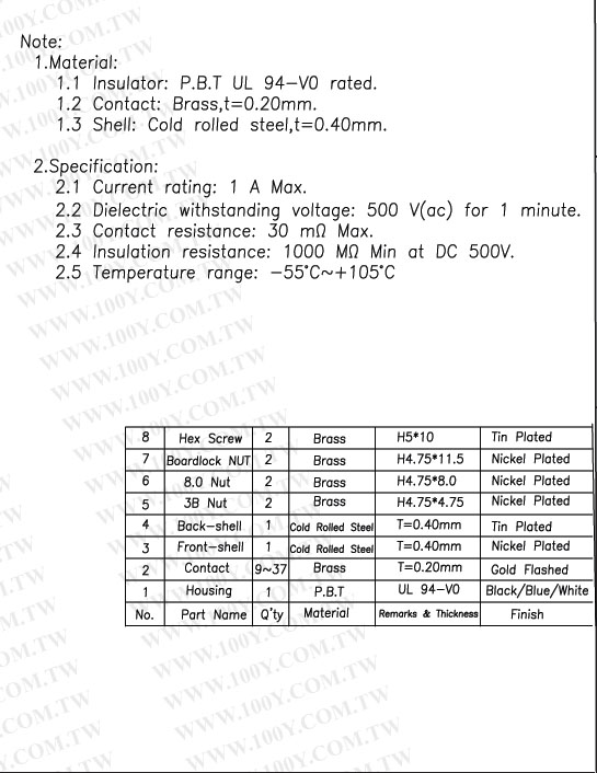 D型公接頭 25P 帶魚叉6mm 加鎖 (ROHS)