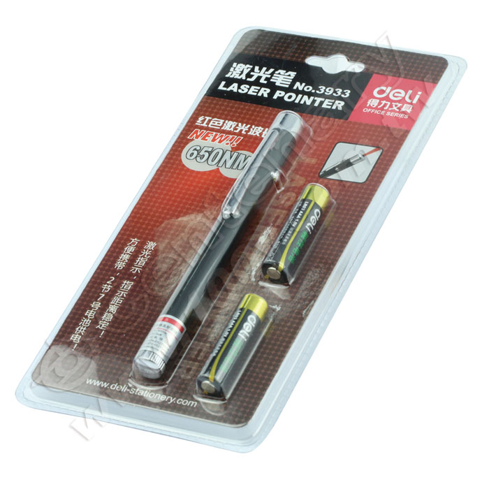 得力3933激光筆外殼顏色:黑,銀顏色隨機發貨光線顏色:紅光(650NM)商務提案,教學及企業培訓的得力工具3933-乾電池:賣點:紅外線激光筆,優質機芯,質量可靠;外觀典雅大方;紅外線激光筆,優質機芯,質量可靠