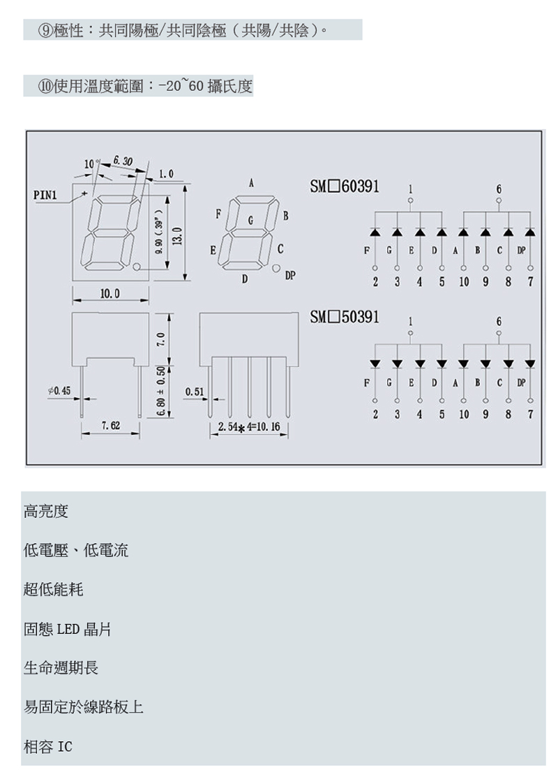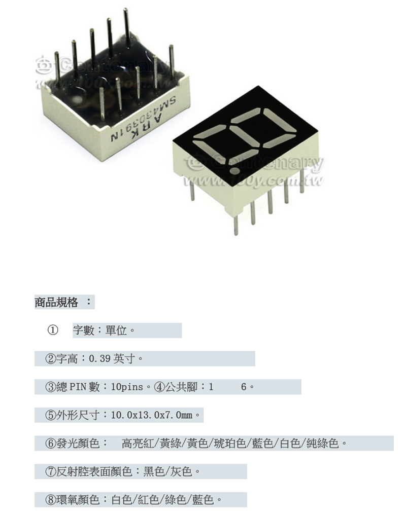 0.39英寸共陰高亮紅色1位數碼管