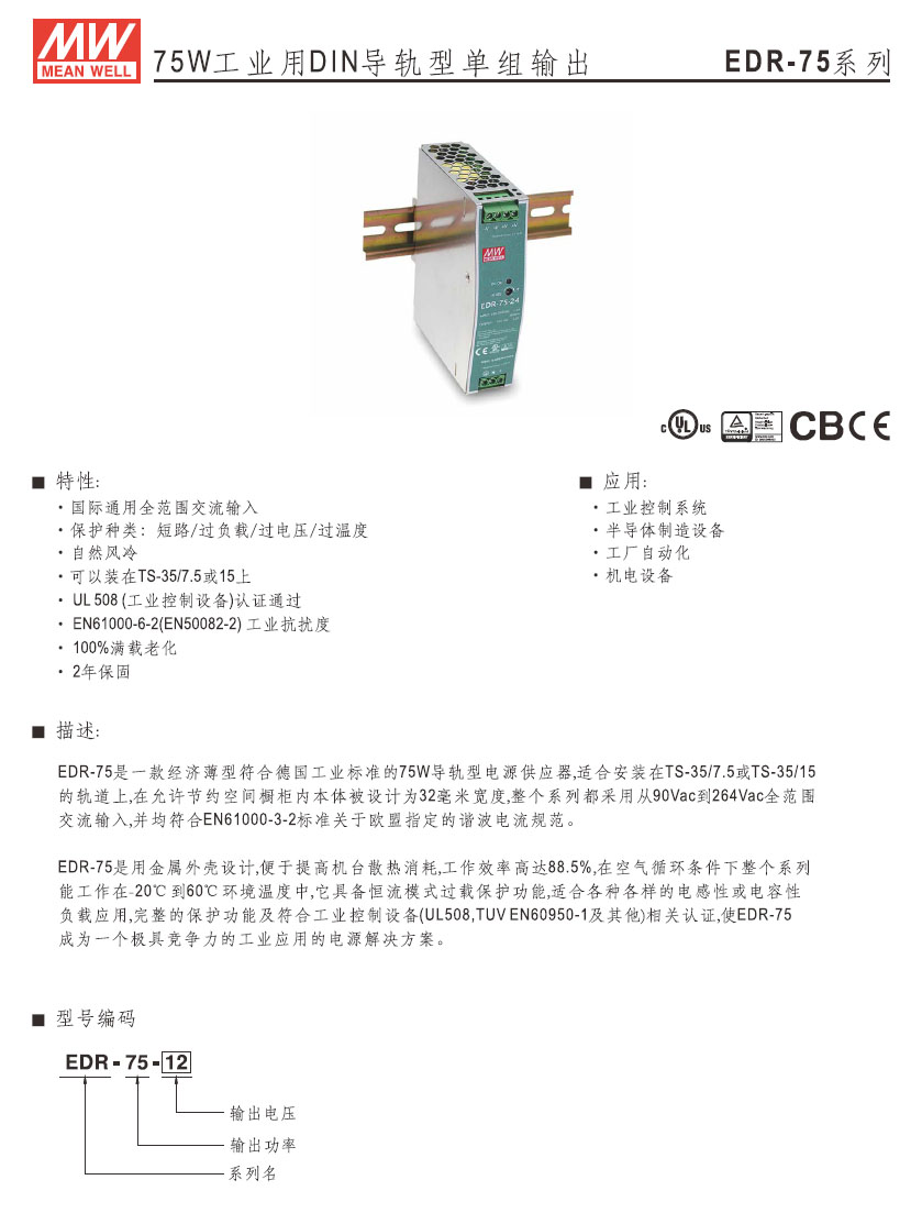 75W/24V 電源供應器