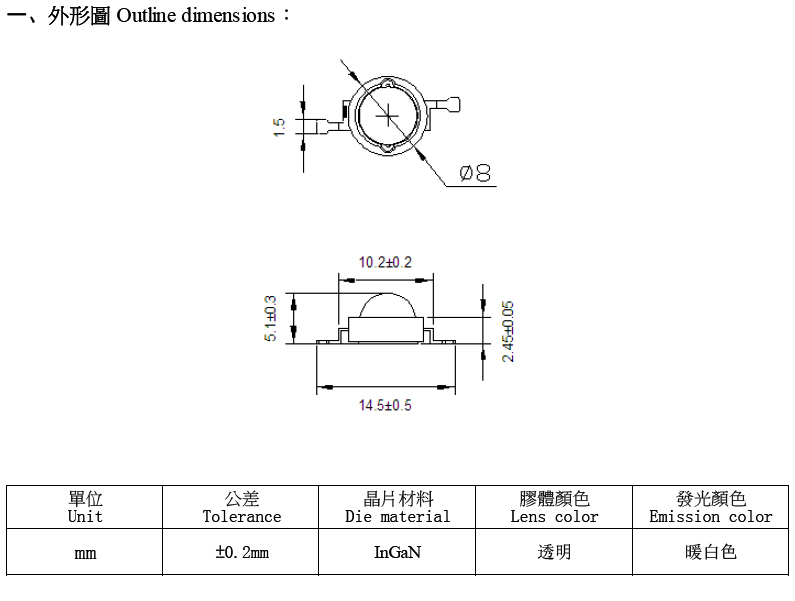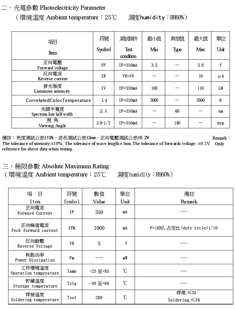 1W高功率暖白光LED,100-110LM,40mil芯片