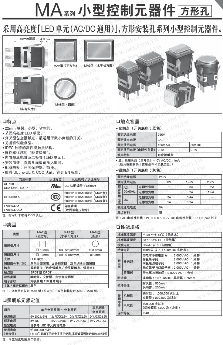 IDEC_長方形照光按鈕開關 瞬時型 SPDT
