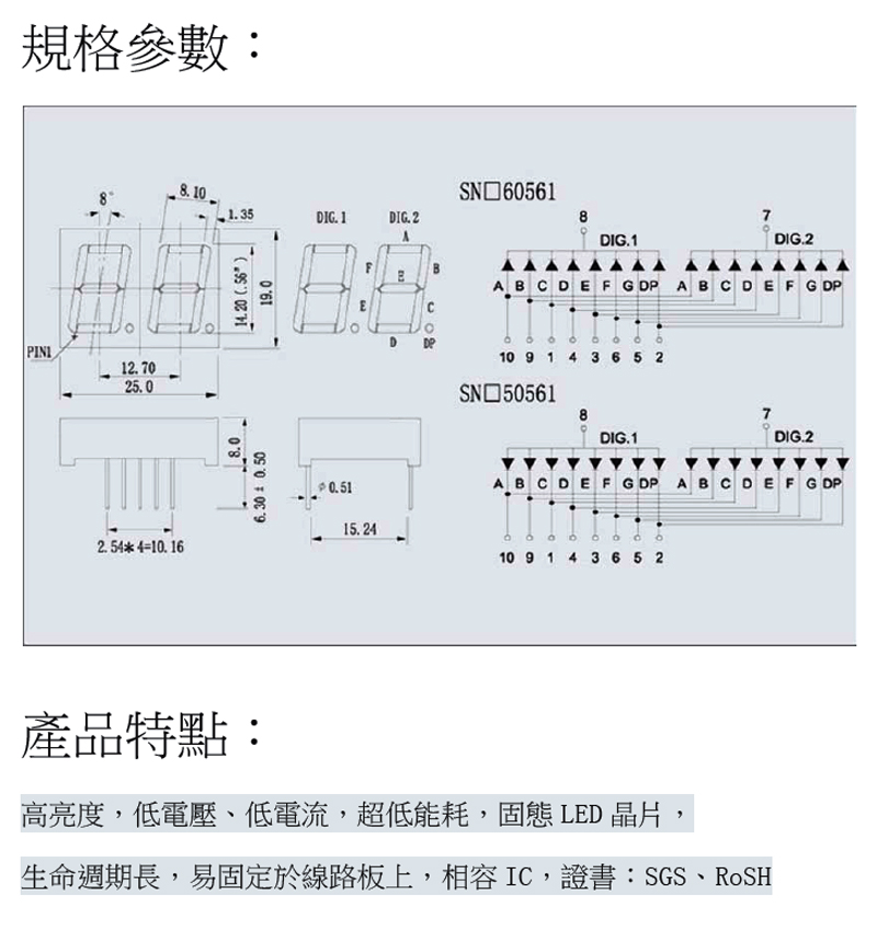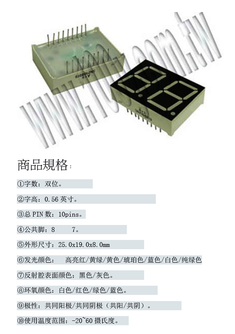 0.36英吋兩位數碼管,高亮紅色,共陽