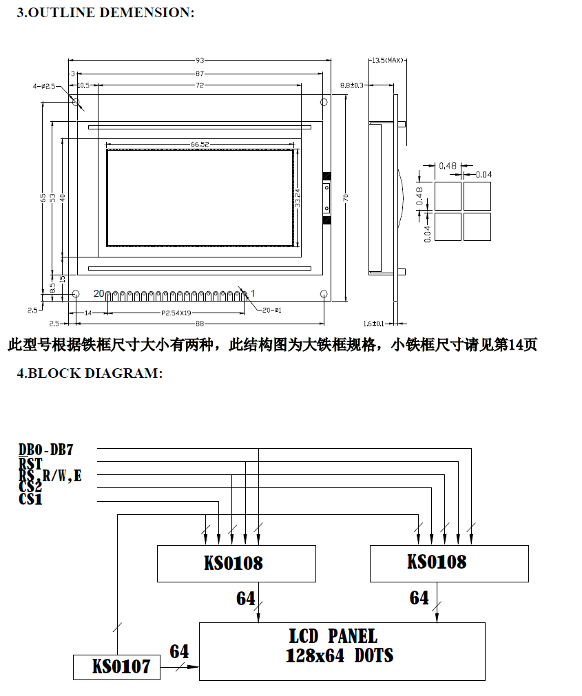 繪圖LCD 5V (藍屏白字) 128*64 Dots 並口