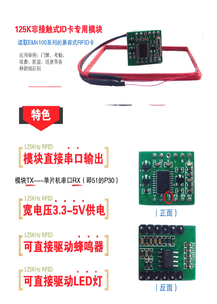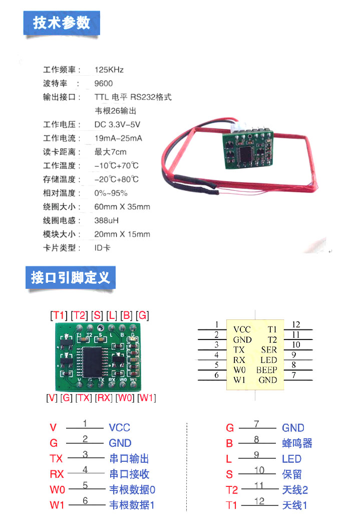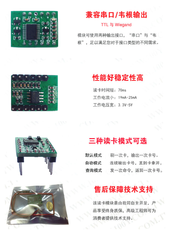 ID卡射頻模組RFID讀卡模組串口WG26韋根輸出